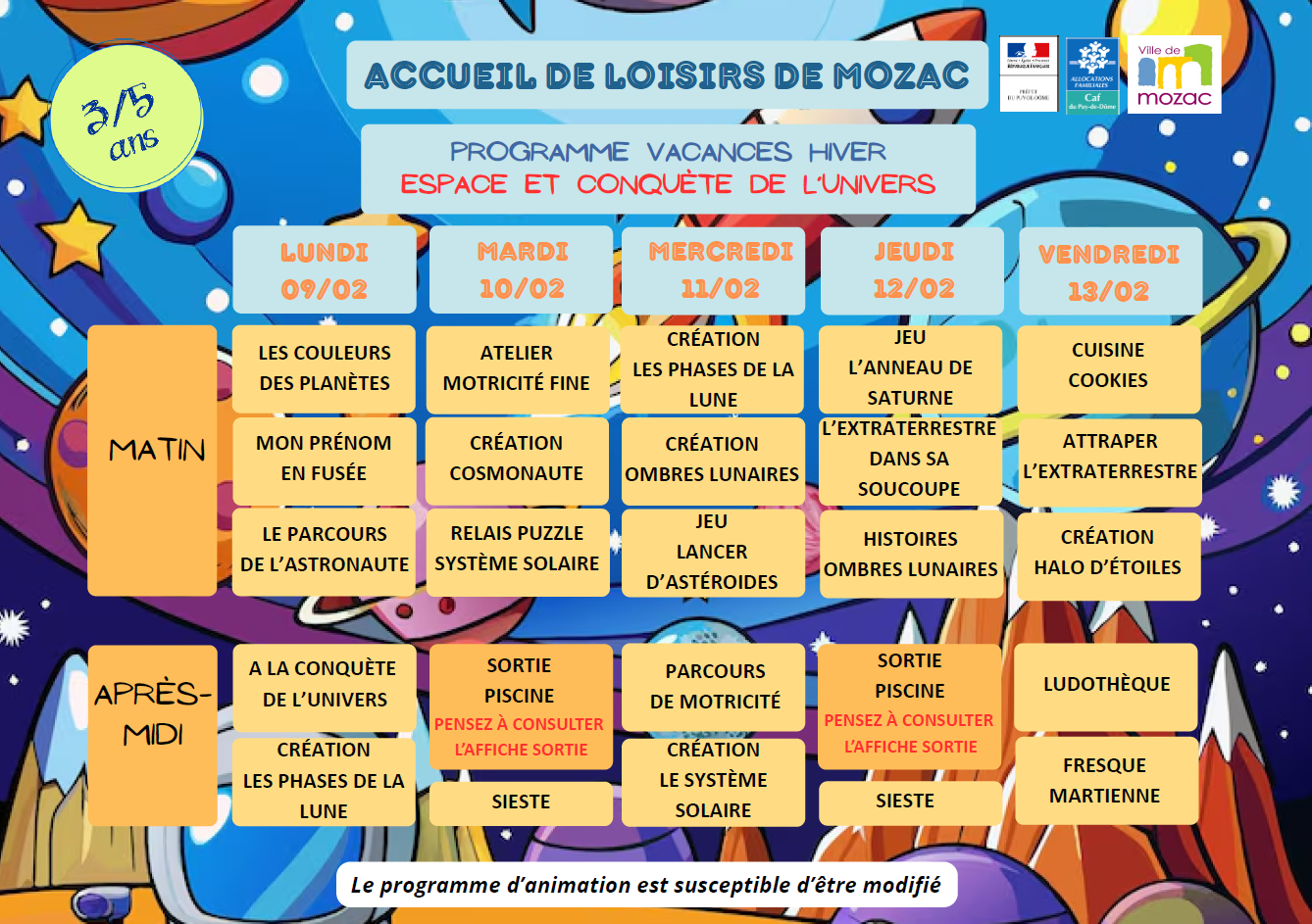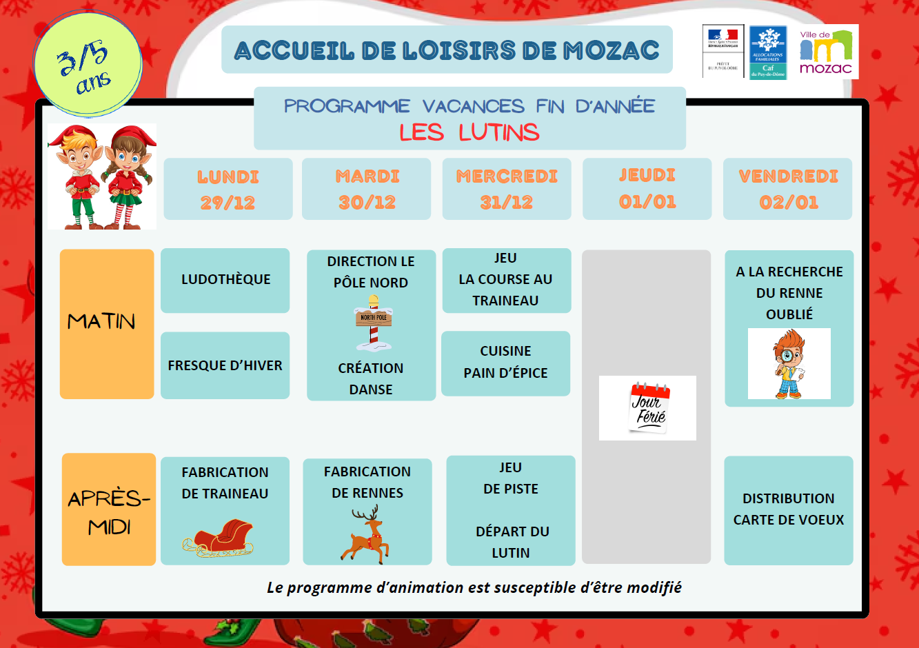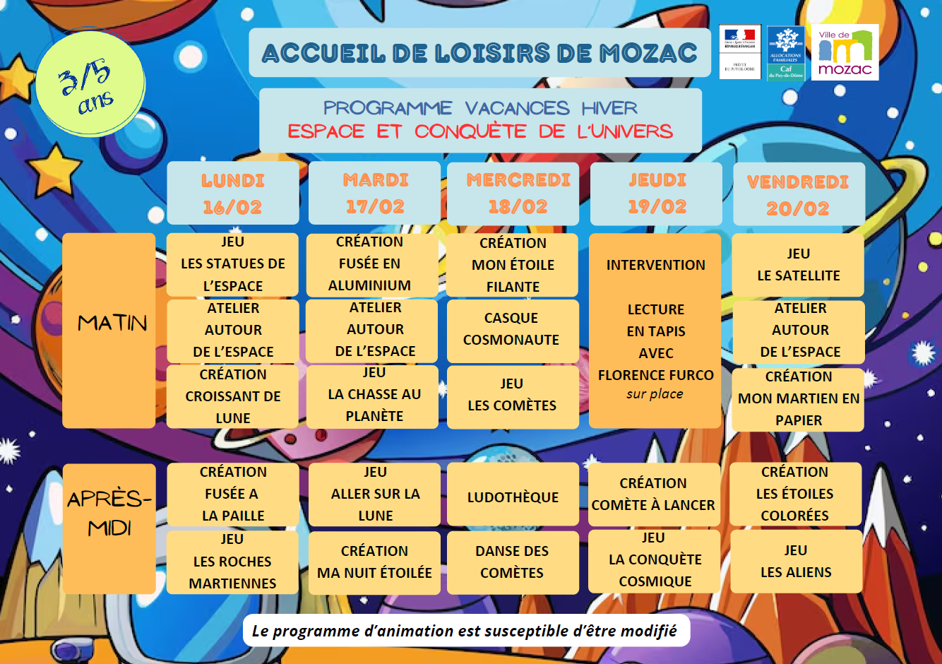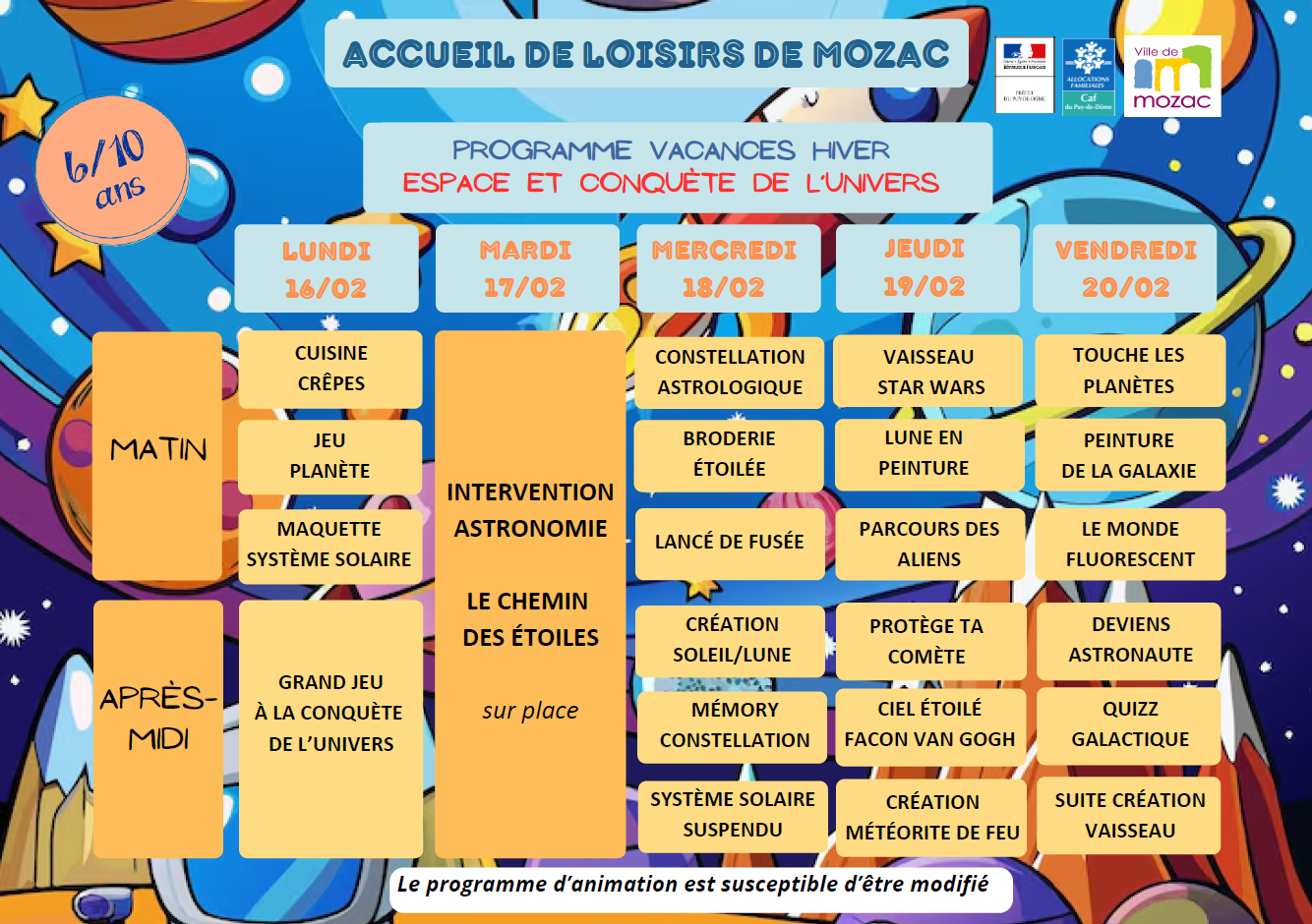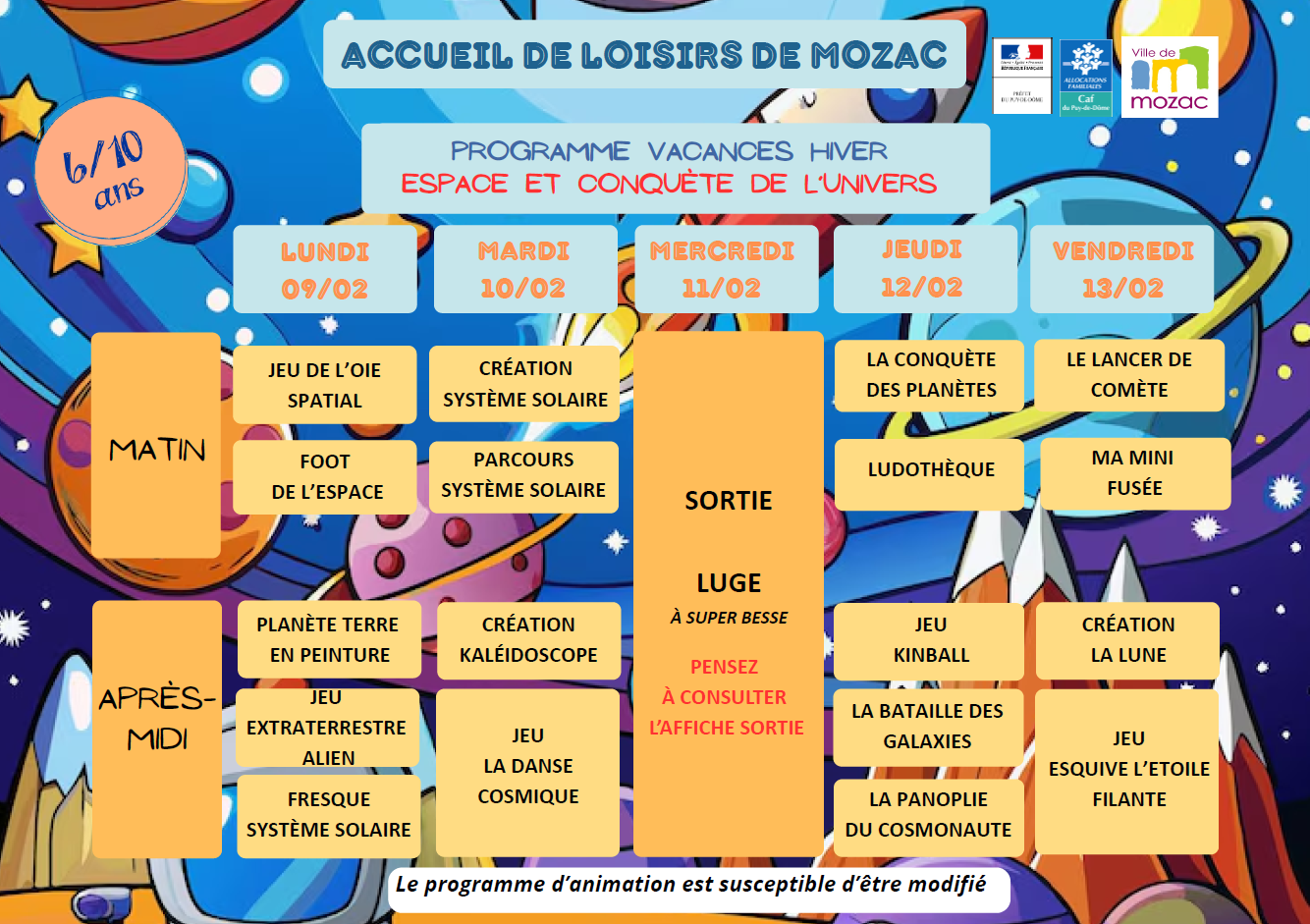 L’accueil de loisirs de la commune de Mozac est déclaré auprès du Service Départemental à la Jeunesse à l’Engagement et aux Sports. Elle se déroule au 50 rue de l’hôtel de ville 63200 MOZAC.