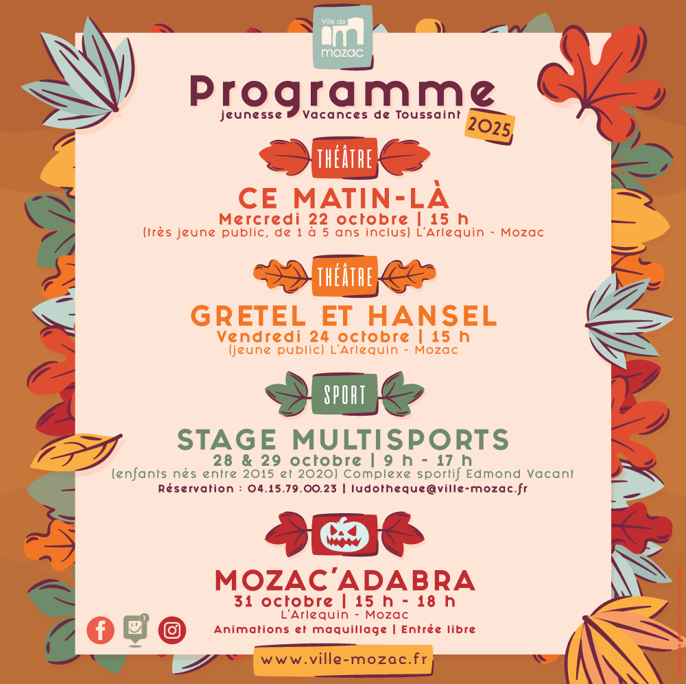Les vacances de Toussaint approchent et la ville de Mozac propose plusieurs activités aux enfants et aux familles de la commune.