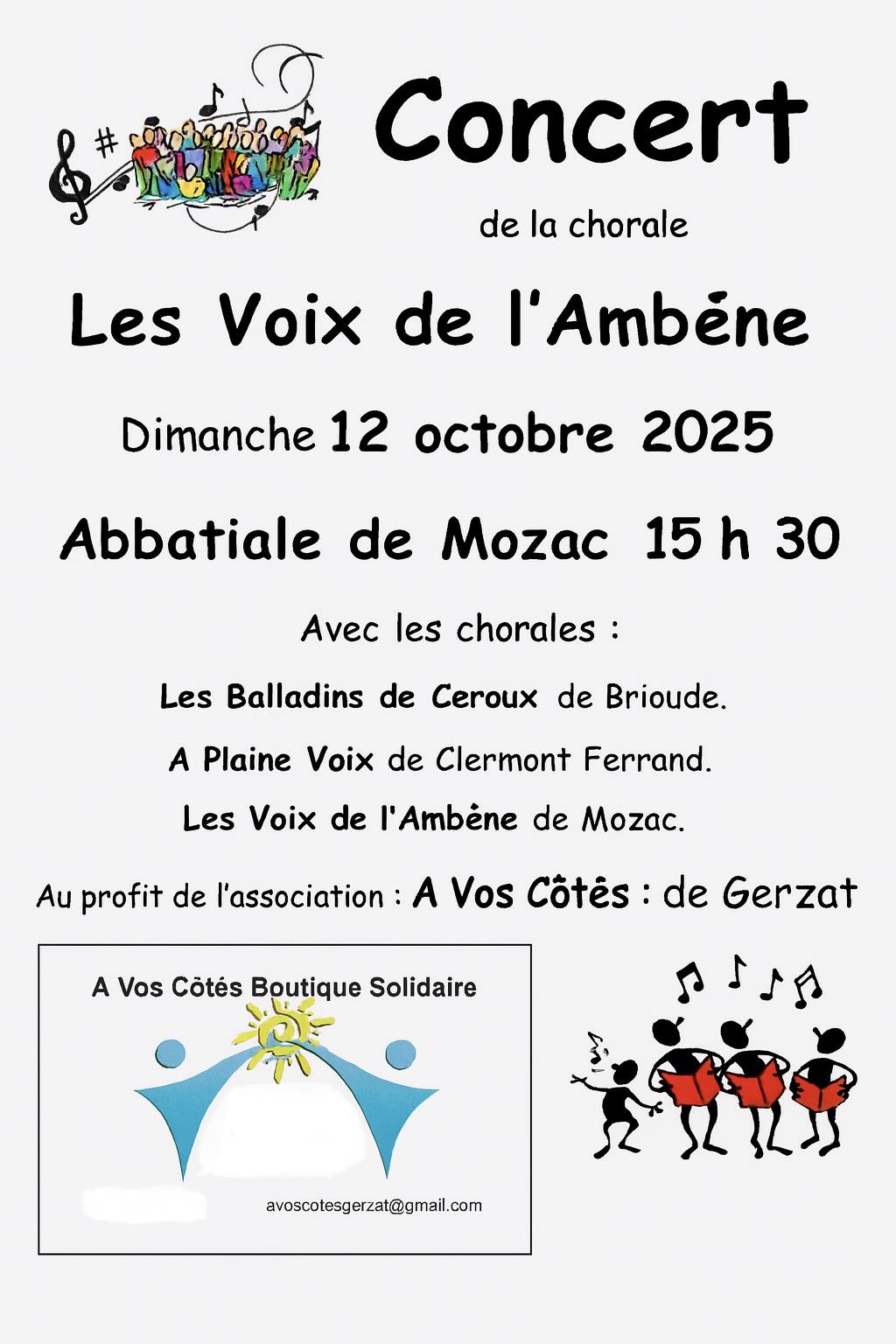 Avec les Voix de l’Ambène (chorale de l’Association familiale de Mozac), Les Balladins de Ceroux (Brioude), A Plaine Voix (Clermont-Ferrand).