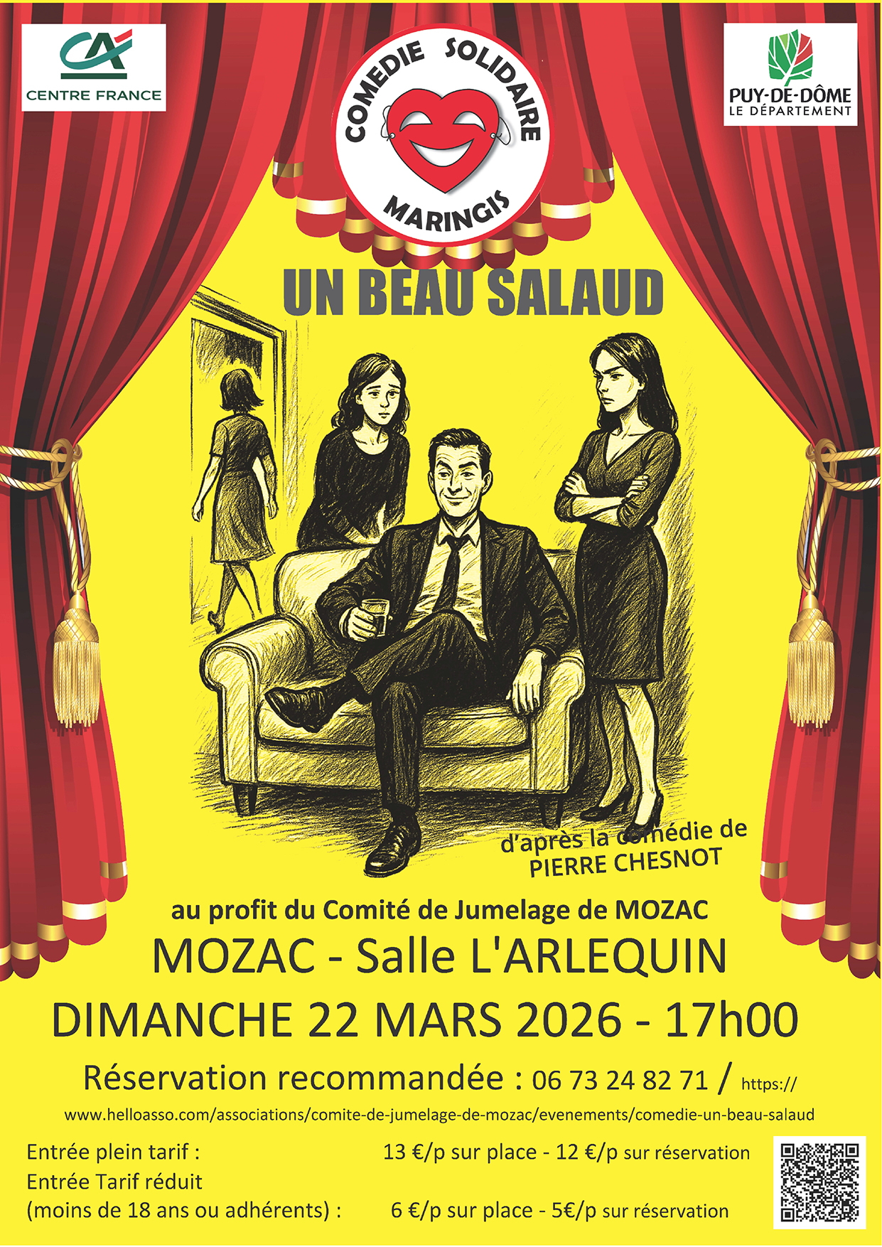 Le comité de jumelage de Mozac vous propose d’assister à la représentation de la pièce de théâtre « Un beau salaud » d’après la comédie de Pierre Chesnot.