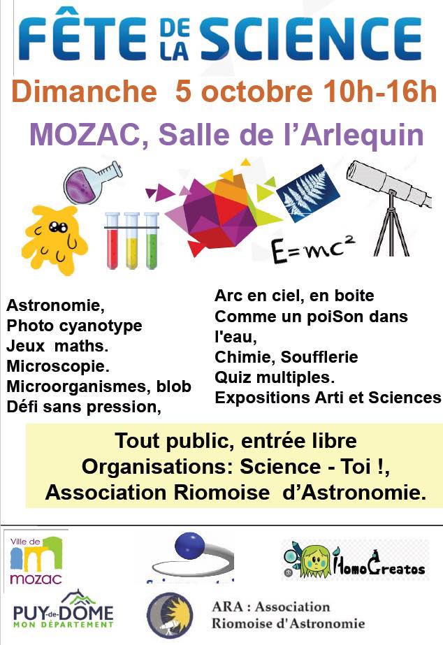 Fête de la science dimanche à L'Arlequin - Mozac. Dimanche 5 octobre 2025 10h - 16h Entrée gratuite